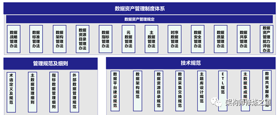 保障组织架构正常运转和数据治理各项工作的有序实施,需要建立一套涵盖不同管理粒度、不同适用对象,异覆盖数据治理过程的管理制度体系,从“法理”层面保障数据治理工作有据、可行、可控。