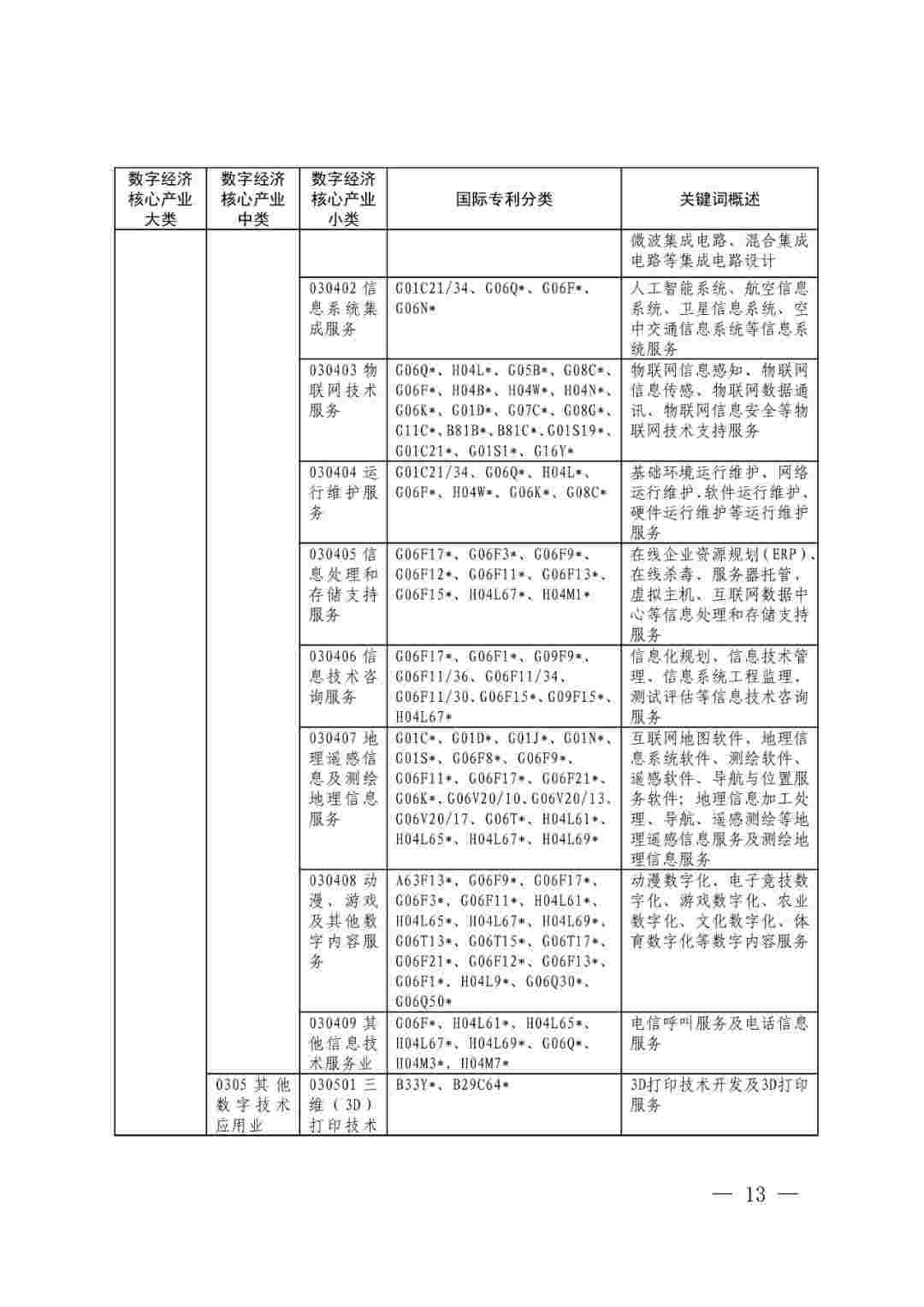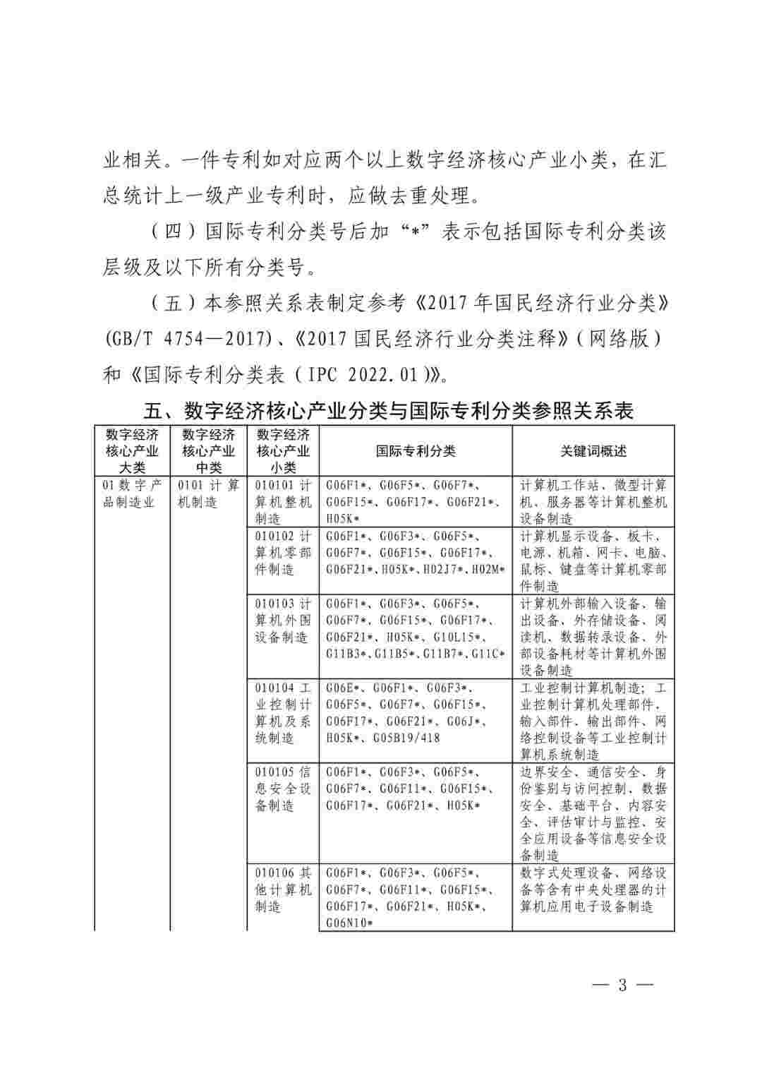 国家知识产权局办公室关于印发《数字经济核心产业分类与国际专利分类参照关系表(2023)》的通知