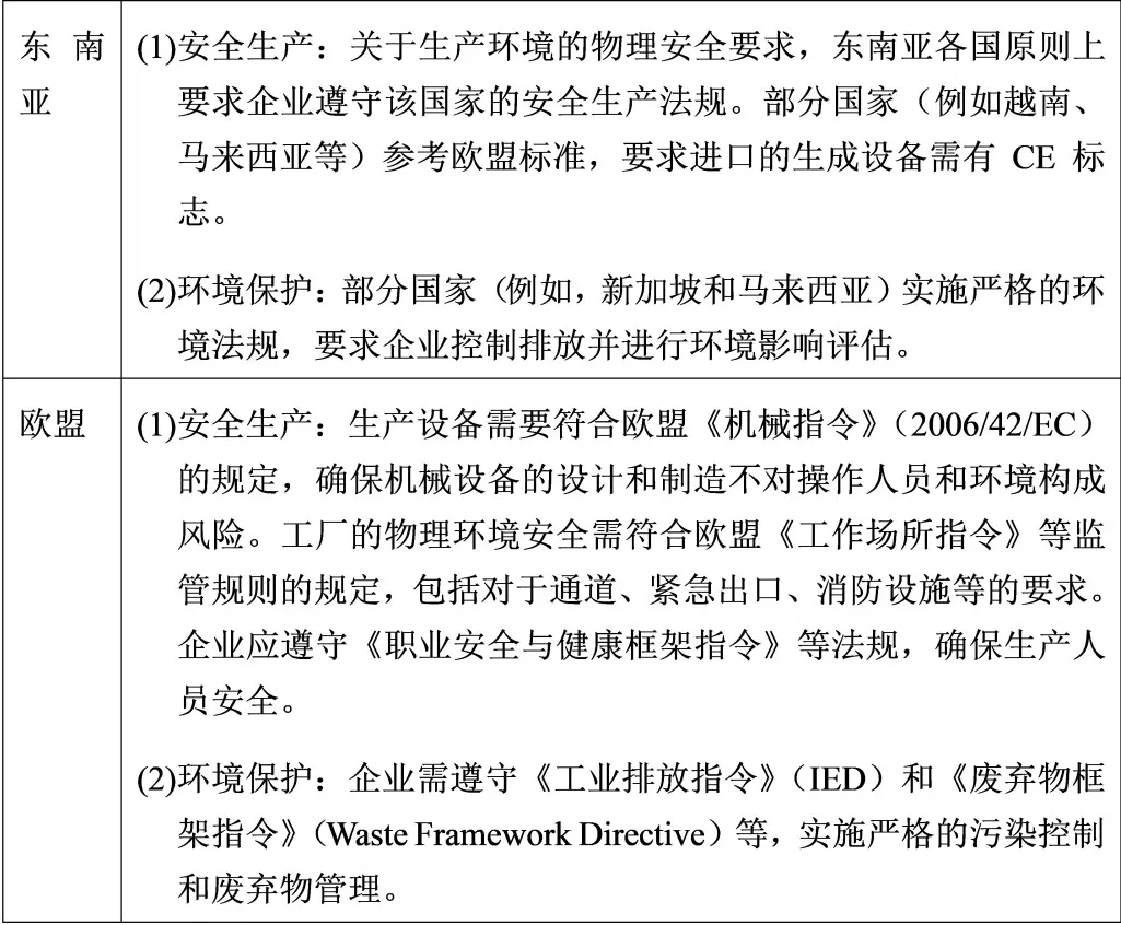 中国智能制造业企业在拓展海外市场时,需严格遵守各地的安全生产与环境保护监管要求。以下为东南亚和欧盟市场的部分合规要求:数字化转型网www.szhzxw.cn