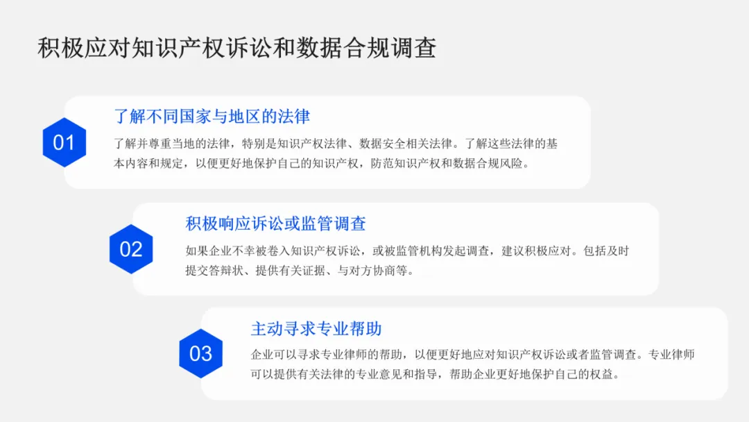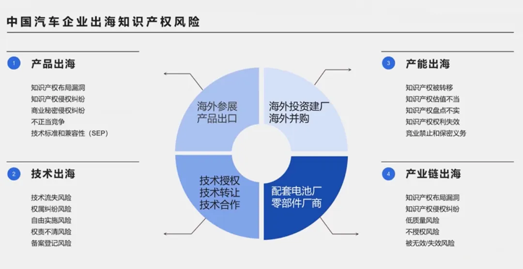知识产权风险应对和数据合规也是中国汽车企业出海的必经之路,是企业国际化战略的核心组成部分。
