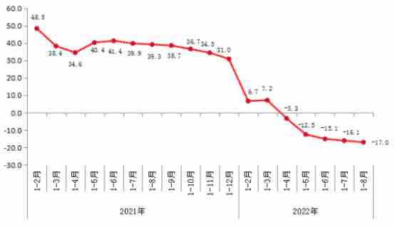 分轻重工业看,1-8月,轻工业增加值比上年同期下降43.9%;重工业增长3.5%。
