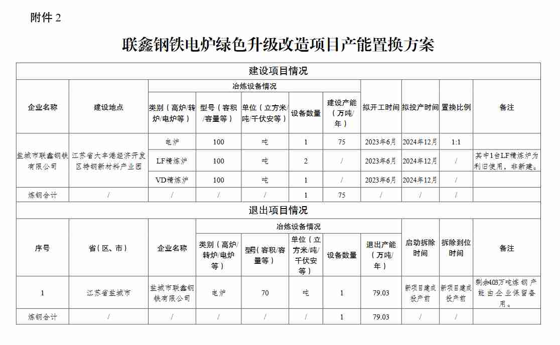 2.联鑫钢铁电炉绿色升级改造项目产能置换方案