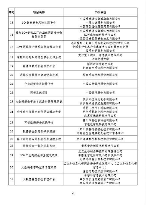 根据《关于开展网络安全技术应用试点示范工作的通知》(工信厅联网安函〔2022〕2号)工作部署,经单位申报、部门初审和推荐、专家评审、网上公示等环节,现将2022年网络安全技术应用试点示范项目名单予以公布。