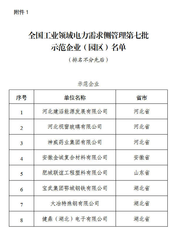 1.全国工业领域电力需求侧管理第七批示范企业(园区)名单