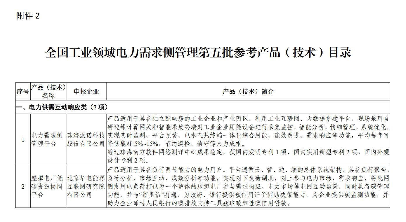 2.全国工业领域电力需求侧管理第五批参考产品(技术)目录