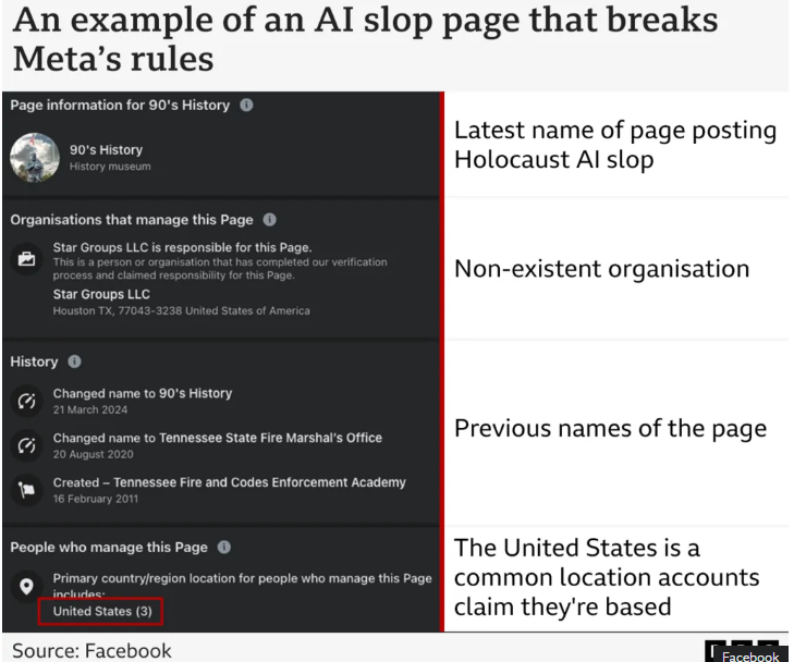 这些 AI 生成的图像内容质量低劣,通常被称为 “AI 垃圾”,并在社交媒体上大量传播。奥斯维辛博物馆在6月发出警告,指出这些账户窃取其发布的内容,通过 AI 模型加工后,往往扭曲历史细节或完全虚构受害者的故事。