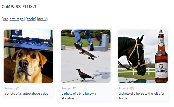近日,来自研究团队的一项新成果引起了广泛关注 ——CoMPaSS-FLUX.1模型。这是一种基于 FLUX.1文本到图像扩散模型的 LoRA 适配器,旨在显著提升生成图像时对物体空间关系的理解能力。该模型在处理物体的特定空间关系方面取得了显著进展,为图像生成领域带来了新的可能性。