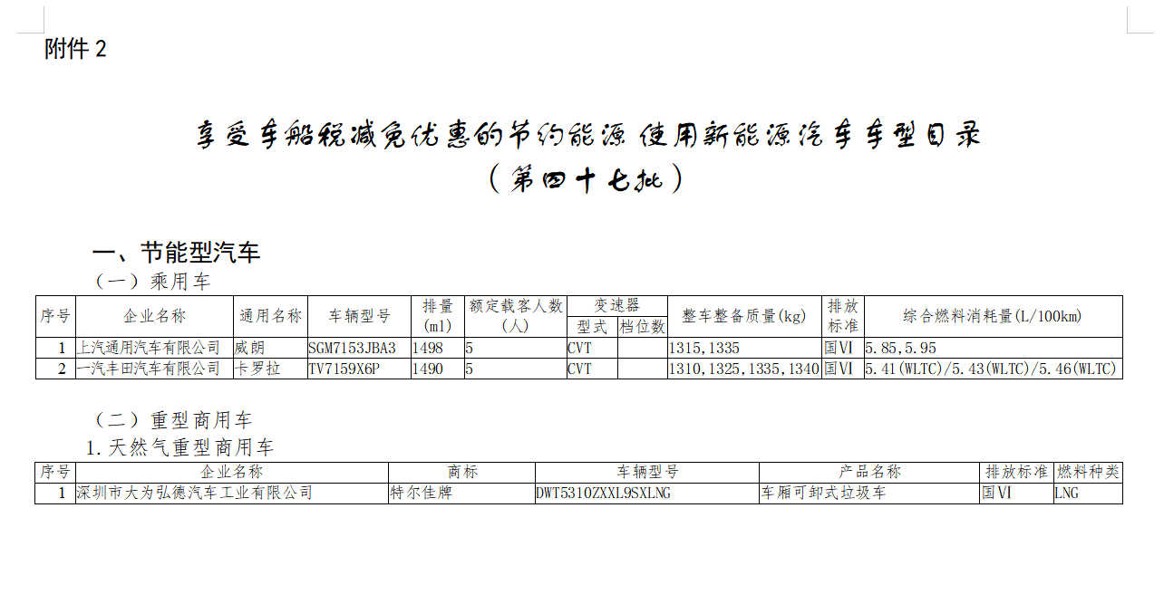 根据《中华人民共和国行政许可法》《国务院对确需保留的行政审批项目设定行政许可的决定》《财政部 税务总局 工业和信息化部 交通运输部关于节能 新能源车船享受车船税优惠政策的通知》(财税〔2018〕74号)、《工业和信息化部 财政部 国家税务总局关于调整享受车船税优惠的节能 新能源汽车产品技术要求的公告》(2022年第2号)、《财政部 税务总局 工业和信息化部 科技部关于免征新能源汽车车辆购置税的公告》(2017年第172号)、《中华人民共和国工业和信息化部 财政部 国家税务总局公告》(2018年第17号)、《工业和信息化部 财政部 税务总局关于调整免征车辆购置税新能源汽车产品技术要求的公告》(2021年第13号)、《财政部 税务总局 工业和信息化部关于延续新能源汽车免征车辆购置税政策的公告》(2022年第27号)等有关规定,现将许可的《道路机动车辆生产企业及产品》(第368批)以及经商国家税务总局同意的《享受车船税减免优惠的节约能源 使用新能源汽车车型目录》(第四十七批)、《免征车辆购置税的新能源汽车车型目录》(第六十三批)予以公告。