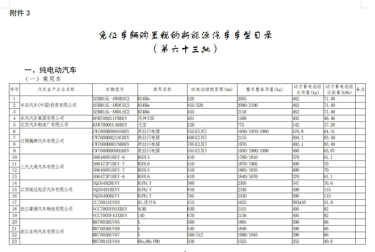 3.免征车辆购置税的新能源汽车车型目录(第六十三批).doc
