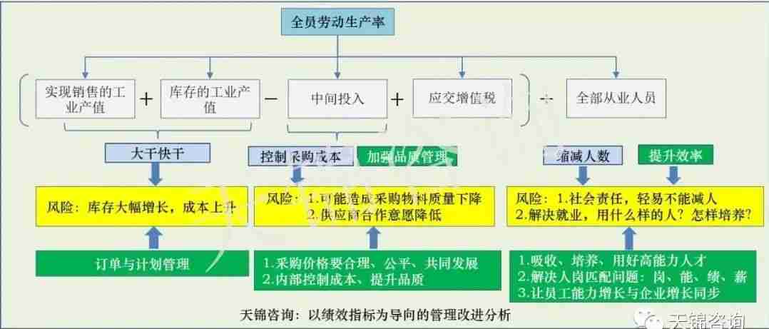 关于全员劳动生产率提升。该指标有几种算法,与企业的行业性质有关,但比较常用的是工业增加值/全部从业人员平均人数。该指标的缺陷在于从员工“工作”角度反映附加价值产出,从另一个维度看,有产出越多价值越大的意味,容易引导员工以“工作产出”作为价值衡量基准的可能。如果回归企业本质,企业往往是以“利润总额”为主要衡量基准,容易出现企业与员工观点标准的不一致,特别是在“工业经济时代”向“工业经济+知识经济时代”转变过程中,倒不如用“人均创造利润”指标更为合适。